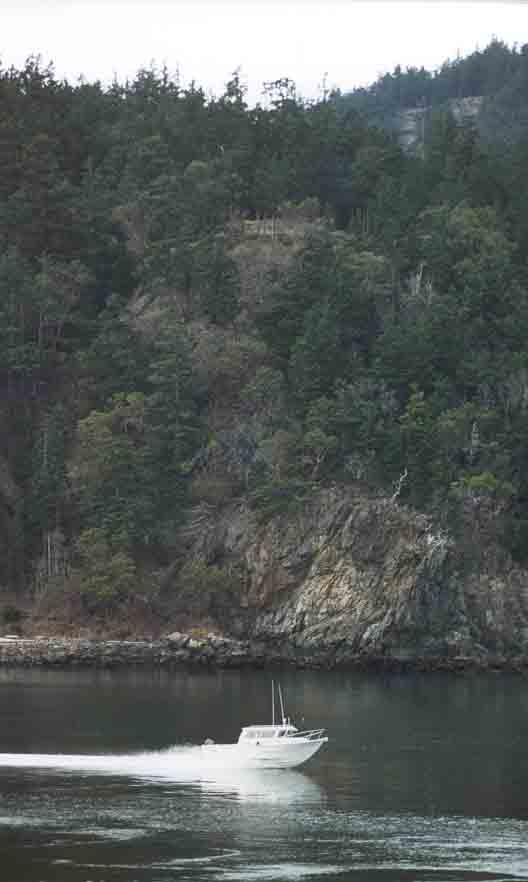 22' Sea Sport Sportsman Limited in front of building site on Lot 9, Blakely Island.