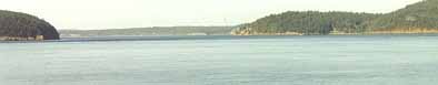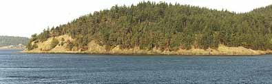Approaching Thatcher Pass from west to east. Decatur Island on left, Lopez Island in middle, Blakely Island on right.