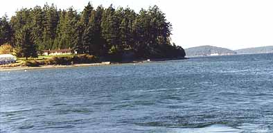 View of Lot 47 on north end of Blakely Island. House is on point looking up Eastsound as in second photo below. Upright Head on Lopez Island is in background of top photo. Photo taken from courtesy float at Blakely Marina.